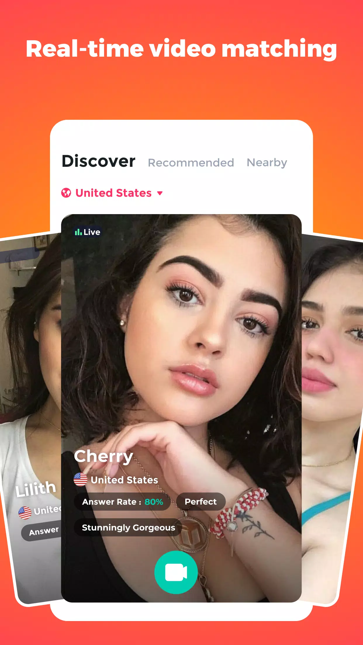 Live Cuteness: Discover live active users near you, see them in action before even texting them, and choose your favorite to chat with.