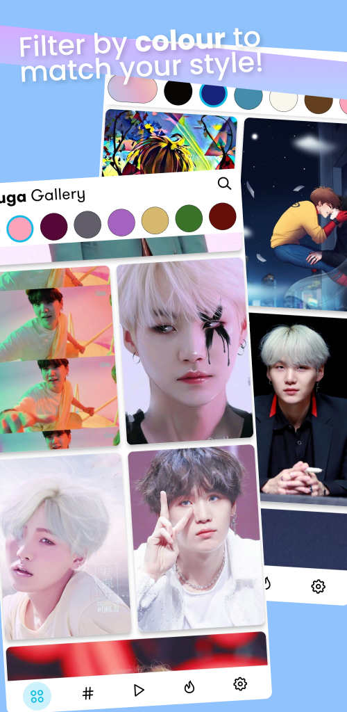 Millions of HD wallpapers of BTS's Suga available in Landscape, Portrait, and Square formats sorted by color.