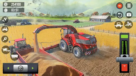 Choose from a variety of heavy harvest machines such as a harvester, crane, harrow, and more to complete farming tasks.
